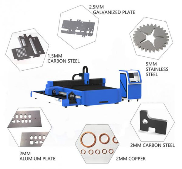 * يستخدم خصيصًا لقطع الفولاذ الكربوني 0.5-6 مم والفولاذ المقاوم للصدأ 0.5-5 مم والفولاذ المجلفن والألواح الفولاذية المطلية بالزنك كهربائياً والفولاذ السيليكون وأنواع أخرى من الألواح المعدنية الرفيعة. 1000W يمكن قطع الألومنيوم 3 مم والنحاس 2 مم.